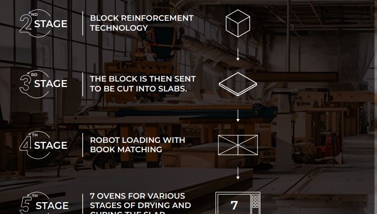 Block cutters or gang saws are used at the processing plant to cut marble blocks into slabs of different thicknesses. These slabs are then polished to achieve the desired finish, ranging from a high gloss to a matte or honed surface. Polishing brings out its natural beauty of the marble, highlighting its colours and veining patterns. Lastly, the finished slabs are rated according to its quality and sent to wholesalers and merchants.